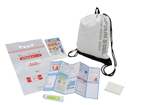 携帯用防災ソフトバッグセット KBS26-10 ¥1,500(税別) 262050N405 ■セット内容 A4ソフトバッグ・ホイッスル付ライトペン・非常用トイレ・防災用ウエットティッシュ・防災用ウエットボディタオル・防寒シート・カイロ・マスク・ポケットティッシュ・ペーパー歯磨き2包 ■材質 ソフト …